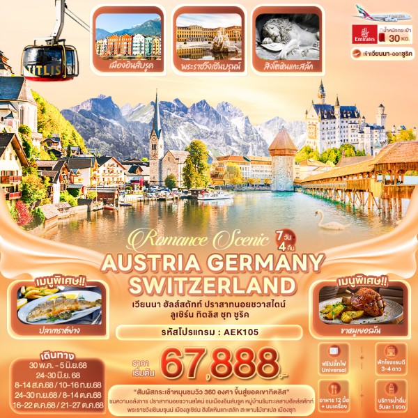 สวิตเซอร์แลนด์ (ทิตลิส พิลาตุส จุงเฟรา) 7 วัน 4 คืน