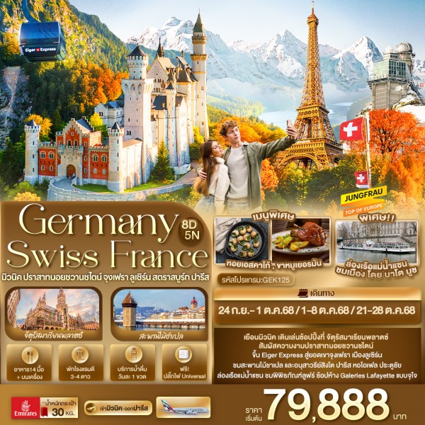 Germany Switzerland France มิวนิค ปราสาทนอยชวานชไตน์ จุงเฟรา ลูเซิร์น สตราสบูร์ก ปารีส 8 วัน 5 คืน