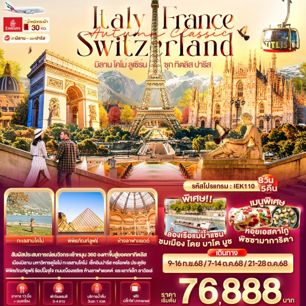 Autumn Classic Italy Switzerland France มิลาน โคโม่ ลูเซิร์น ซุก ทิตลิส ปารีส 8 วัน 5 คืน