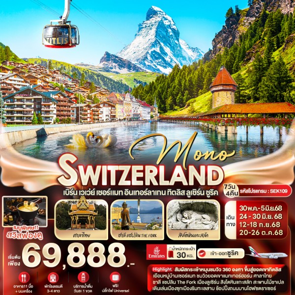 MONO SWITZERLAND เบิร์น เวเว่ย์ เซอร์แมท อินเทอร์ลาเกน ทิตลิส ลูเซิร์น ซูริค 7 วัน 4 คืน