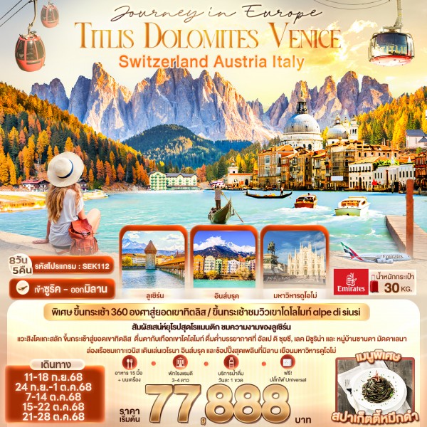 Journey in Europe Titlis Dolomites Venice Switzerland Austria Italy 8 วัน 5 คืน